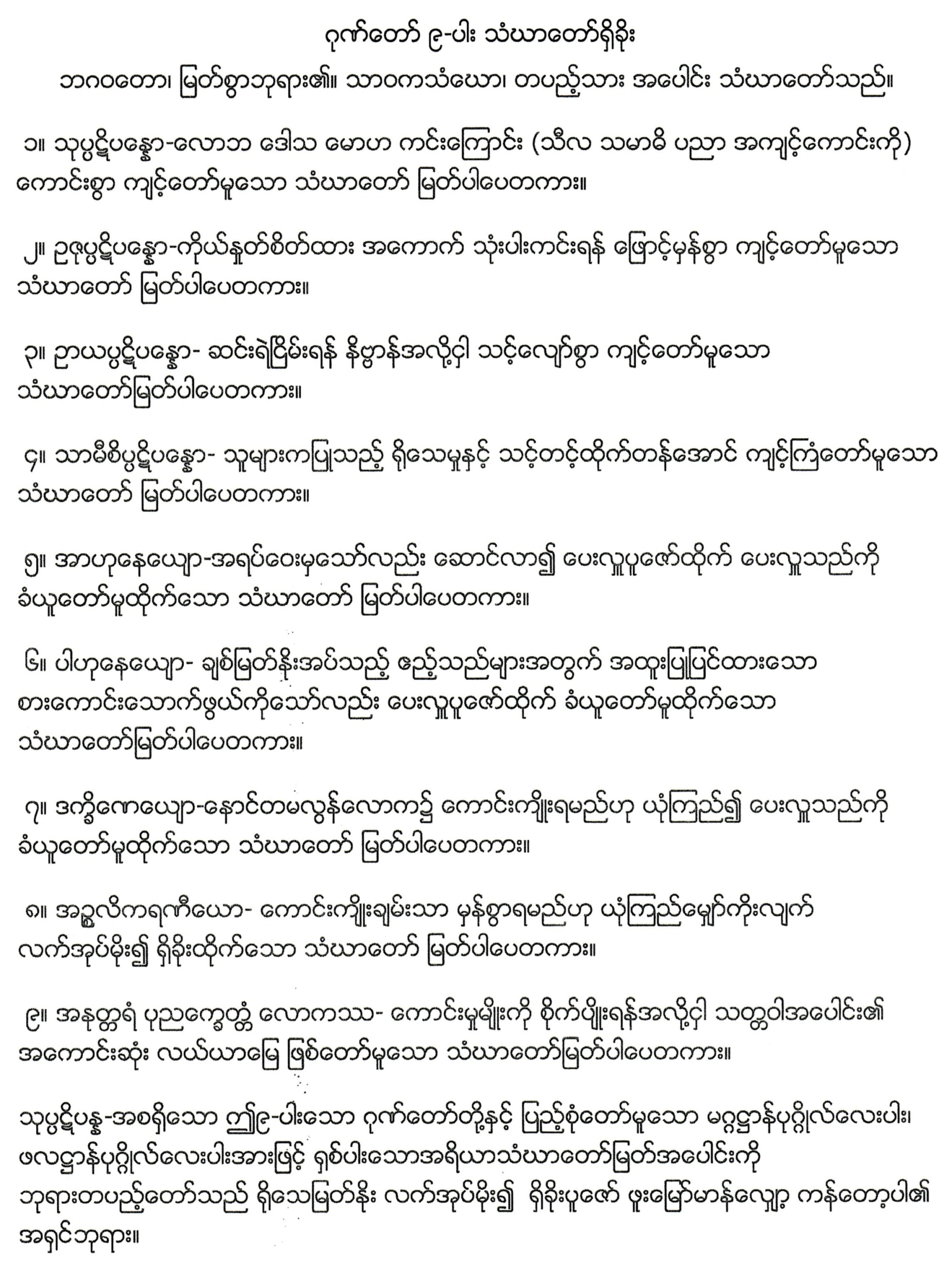 ဘုရားဂုဏ်တော်(၉)ပါး