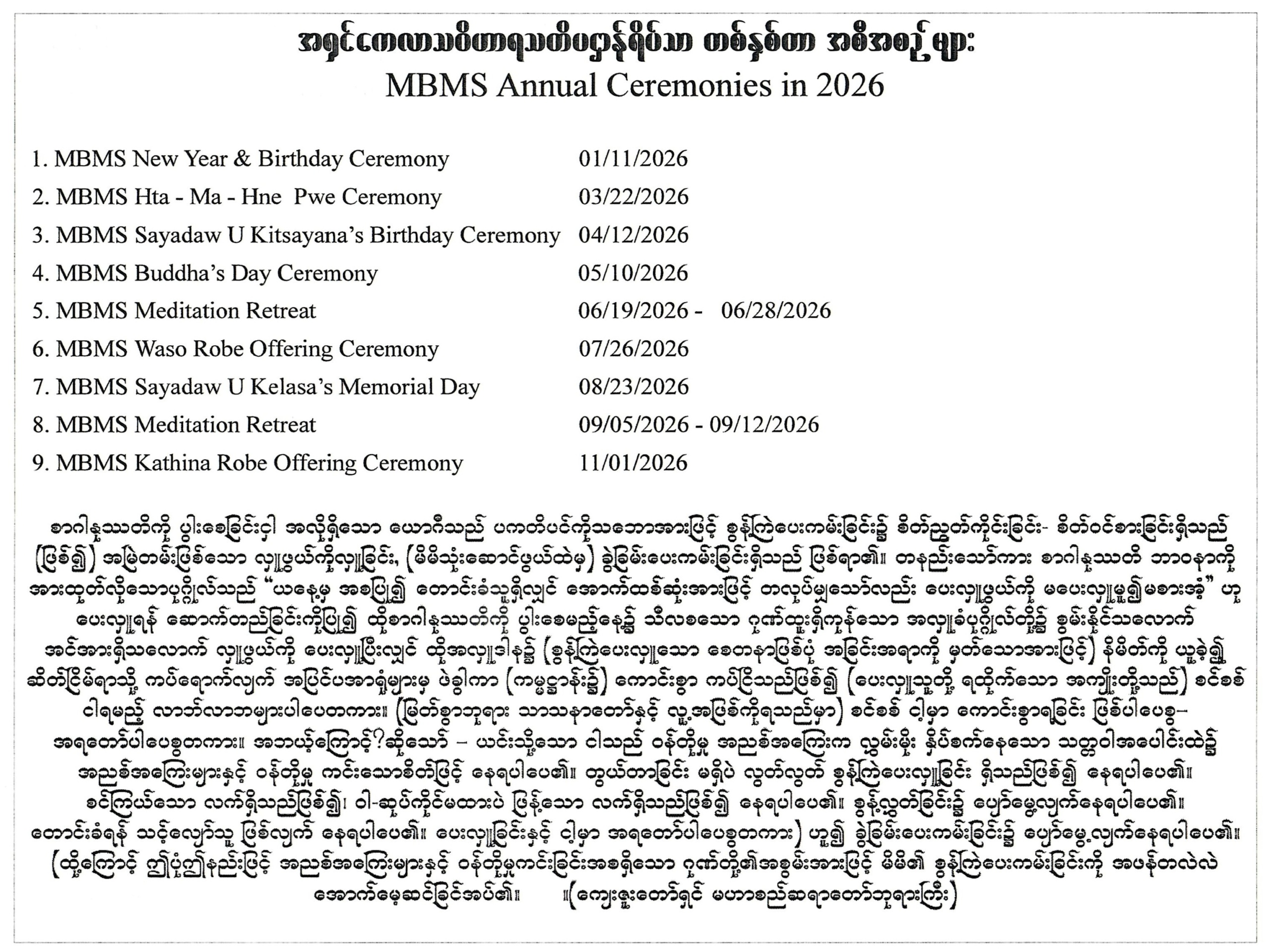 MBMS ANNUAL ACTIVITIES IN 2026
